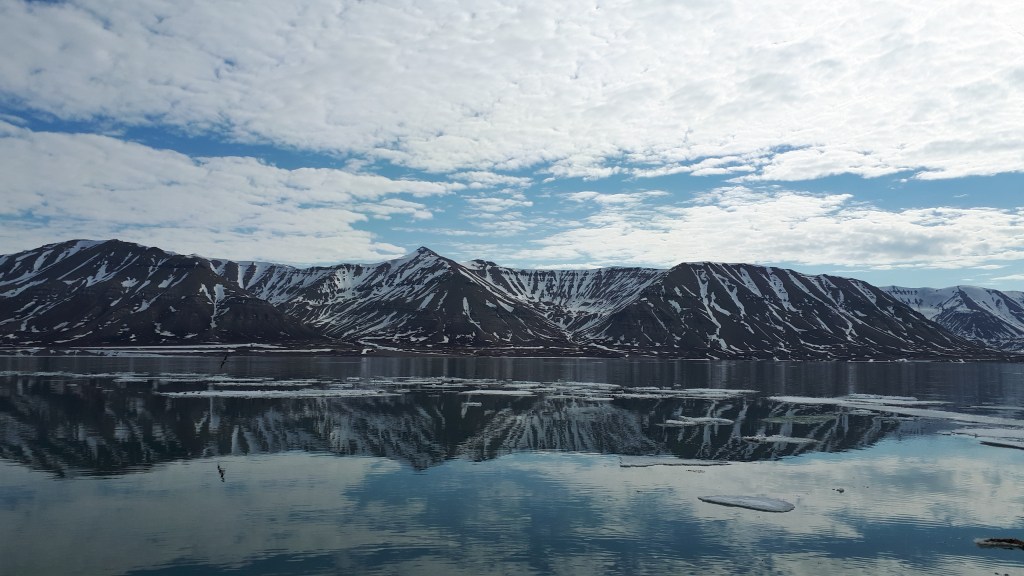 Al varend op een hybride catamaran langs het poolijs dat in stukken langs de boot lijkt te stromen hoor ik de vogels, terwijl een zeehond lui op een van de ijsbrokken onze richting op kijkt. De kleur van de lucht, die weerkaatst in het water steekt scherp af bij het donkere gesteente van de spitse bergen. Er heerst een serene stilte. Sam Donck een Belgische bioloog, die door zijn foto’s mensen bewust probeert te maken van de prachtige natuur komt naast mij staan en pakt zijn verrekijker. Hij schrikt en zegt: ‘gisteren was het ijs zeker een kilometer meer de zee in, nu kunnen wij bijna tot aan de ijswal varen.’ Hij fotografeert en legt de schoonheid vast van de omgeving waar wij doorheen varen. ‘Save the planet’, hoor ik hem zeggen, bijna onhoorbaar voor anderen (www.samdonck.com).